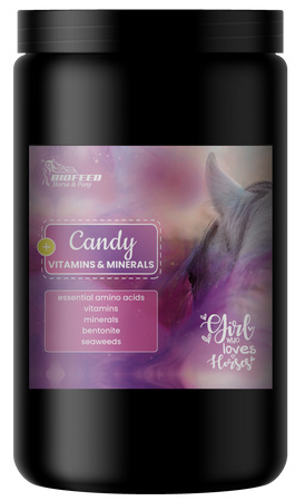 - suplementuje dietę koni i kuców w niezbędne, szerokie spektrum witamin (A, D3, E, K3, B1, B2, B6, B12, C, biotyna, niacyna, kwas pantotenowy, kwas foliowy, cholina) i składników mineralnych (Zn, Cu, Mn, J, Se, Fe, Co) oraz w aminokwasy egzogenne (lizyna, metionina, treonina)